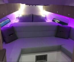 Le SOLEIL 42 offre une expérience de mer unique. Avec deux cabines doubles, une salle de bain privative et une hauteur sous barrots supérieure à deux mètres, l’habitabilité est sans concessions sur la ligne et les performances. Le SOLEIL 42 innove et impose de nouveaux standards sur le segment des semi-rigides « Grand tourisme ».